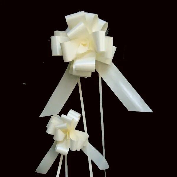 Dichos Lazos se les parece a las aspas de los molinos de viento que solemos ver en los campos. Los lazos de cinta Satín están realizadas a mano en forma artesanal en 2 medidas, una es de diámetros de 10 cm. x 2 cm de ancho y la otra de 15 cm. x 3 cm de ancho, ambas de color blanco.