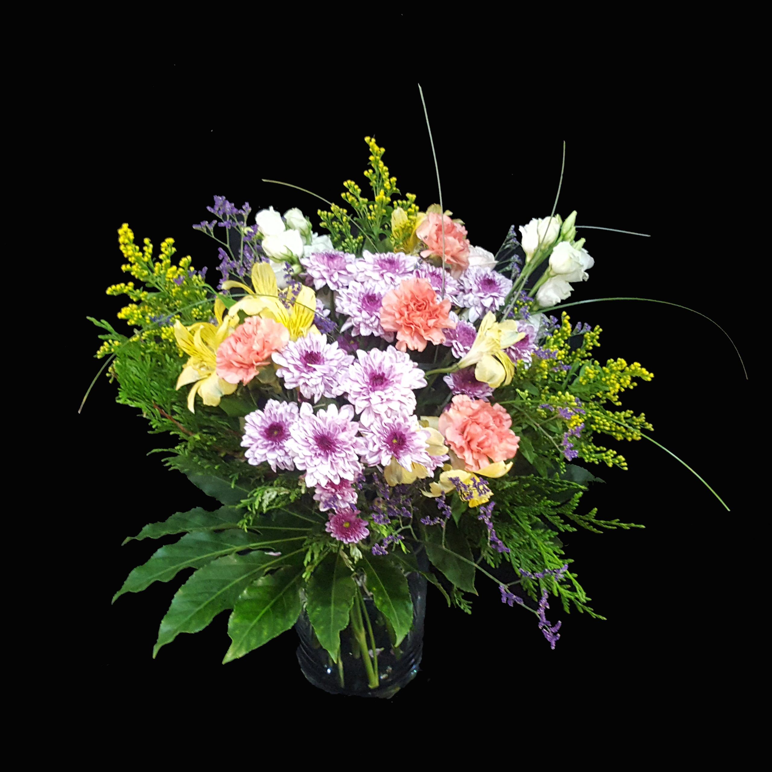 Ramo Variado con Margaritas, Alstromerias, Claveles y Verdes. No incluye jarrón.