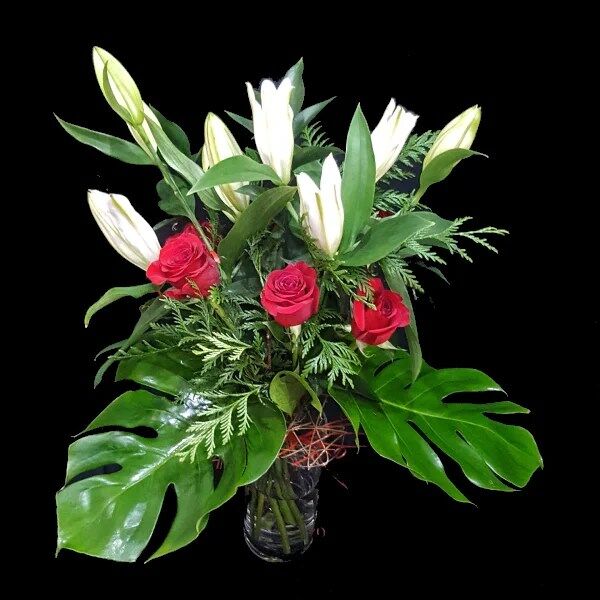 Es una expresión muy especial y particular, expresa reconocimiento, agradecimiento, dedicación, profesionalidad, y otras tantas cosas. Por ello es muy importante brindarle con cierto afecto, cariño y amor si fuere necesario, donde, en ésta ocasión les presentamos un ramo de flores naturales con Lilium blanco y 6 Rosas Rojas, de tallo Corto y Paniculata, ideal para agradecer. De requerir con jarrón y algún otro complemento, por favor, márquelo en el pedido.
