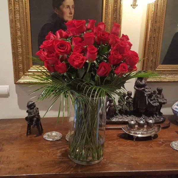 Jarrón con 50 Rosas, todas del mismo color (elegir color en el selector). Incluye Jarrón.