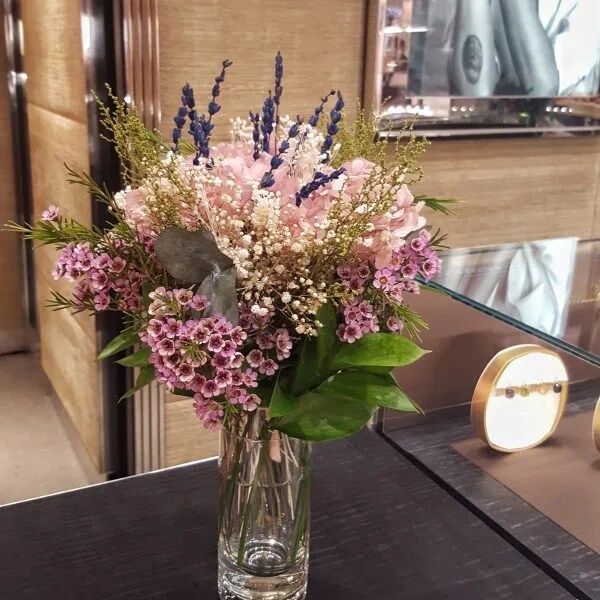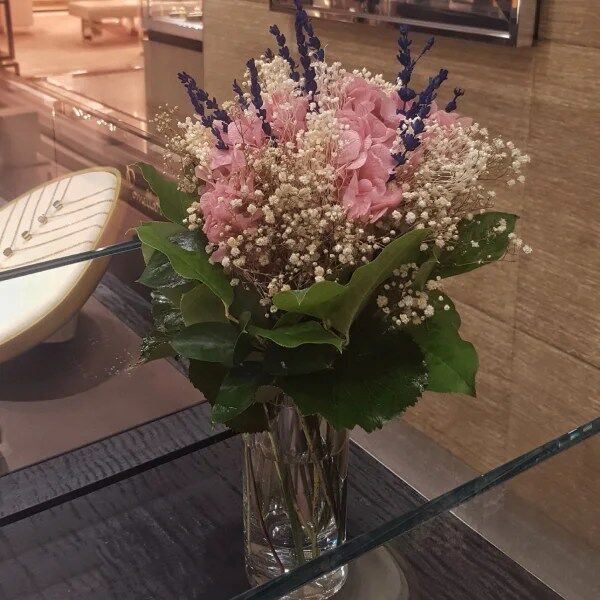 No incluye jarrón. Para añadirlo, selecciona entre los complementos, nuestro jarrón de cristal de 20cm. o 25cm.